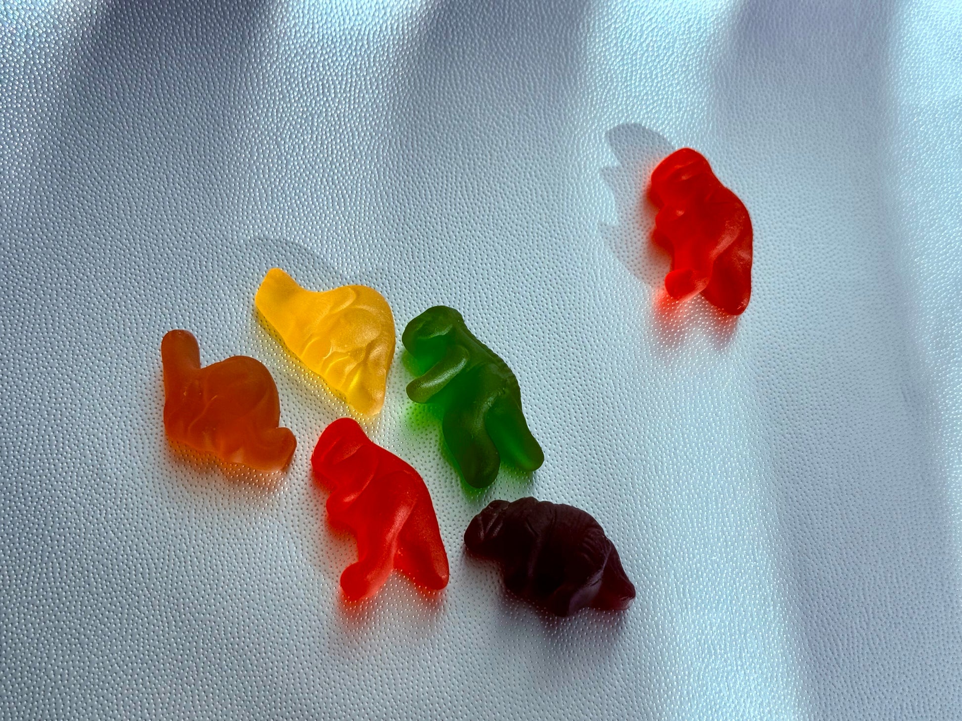 المكونات: شراب الذرة، السكر، عصير التفاح المركز، جيلاتين لحم البقر، حمض الستريك، حمض الأسكوربيك (فيتامين سي)، زيت النخيل، النكهات الاصطناعية، شمع الكارنوبا، شمع العسل، الألوان (أحمر رقم 0.40، أصفر رقم 6، أصفر رقم 5، أزرق رقم 1).